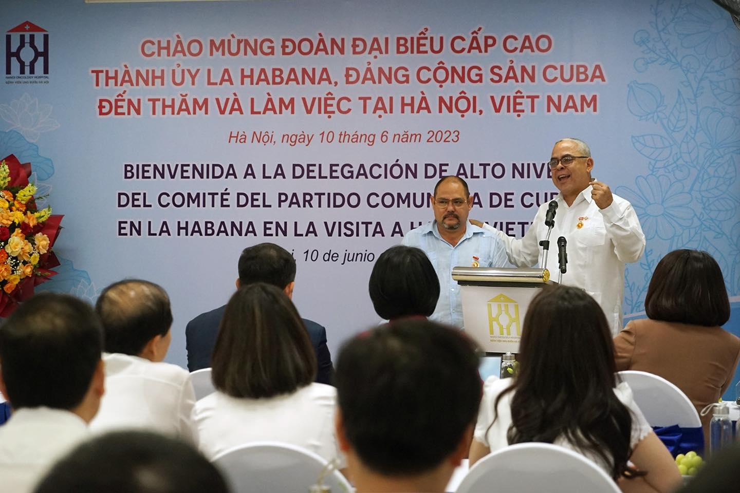 Phát biểu tại buổi làm việc, ông Luis Antonio Torres Iríbar - Ủy viên Trung ương Đảng, Bí thư thứ nhất Thành ủy La Habana cho biết, mặc dù là quốc gia bị cấm vận, song CuBa đã đạt được nhiều thành tựu đáng tự hào như: phát triển mạnh ngành công nghiệp dược phẩm, khống chế đại dịch COVID-19 bằng vắc-xin tự sản xuất trong nước, xây dựng thành công hệ thống tầm soát Ung thư cổ tử cung cho phụ nữ… Ông cũng khẳng định chính quyền TP La Habana sẵn sàng chia sẻ kinh nghiệm trong lĩnh vực y tế, tiếp nhận các bác sỹ của Bệnh viện Ung Bướu Hà Nội sang tham quan, học tập, nâng cao năng lực cũng như hợp tác phát triển y tế với Việt Nam.