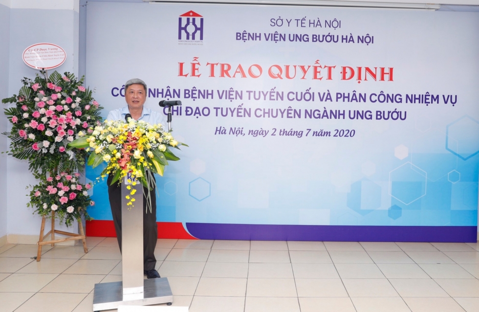 Tại buổi lễ, PGS.TS Lương Ngọc Khuê - Cục trưởng Cục quản lý Khám, chữa bệnh - Bộ Y tế đã công bố quyết định số 2413/QĐ-BYT ngày 10/6/2020 của Bộ trưởng Bộ Y tế. Theo đó, Bộ Y tế quyết định giao Bệnh viện Ung Bướu Hà Nội là bệnh viện tuyến cuối về chuyên môn kỹ thuật chuyên ngành ung bướu. Đồng thời, Bộ Y tế cũng giao Bệnh viện Ung Bướu Hà Nội tham gia công tác chỉ đạo tuyến trong khám, chữa bệnh chuyên khoa ung bướu cùng Bệnh viện K thực hiện nhiệm vụ của đơn vị được phân công chỉ đạo tuyến.