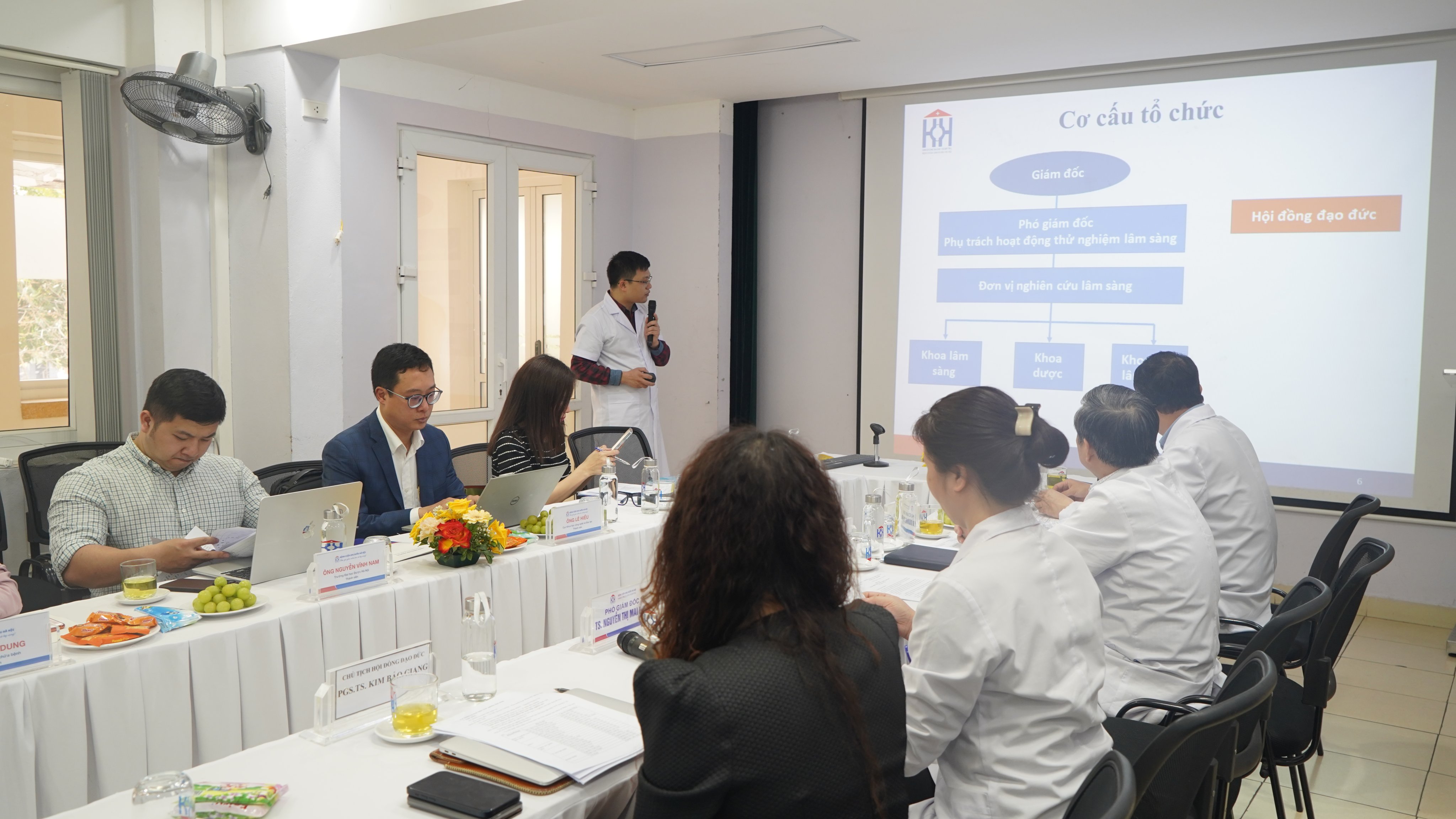 Tiếp đoàn đánh giá, BSCKII. Nguyễn Hoàng Gia – Phụ trách Đơn vị Nghiên cứu lâm sàng đã báo cáo các thành tích đạt được và những thuận lợi, khó khăn vướng mắc trong hoạt động thử thuốc trên lâm sàng tại bệnh viện. Theo đó, tính đến năm 2023, bệnh viện đã và đang triển khai 28 nghiên cứu thử nghiệm lâm sàng, bước đầu đạt được những kết quả tương đối khả quan, các quy trình trong nghiên cứu được thực hiện đúng theo quy trình chuẩn cũng như yêu cầu của đề cương nghiên cứu.