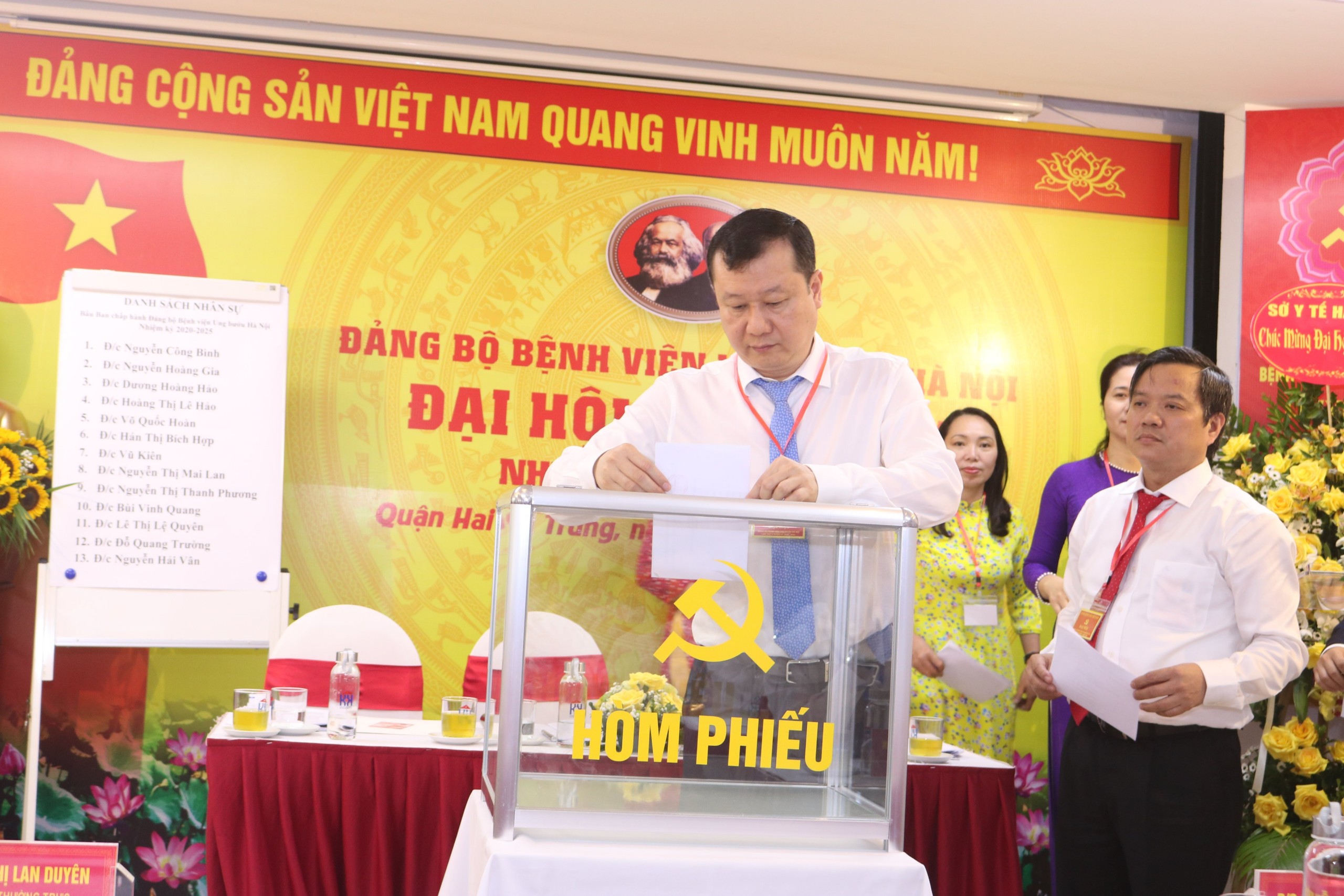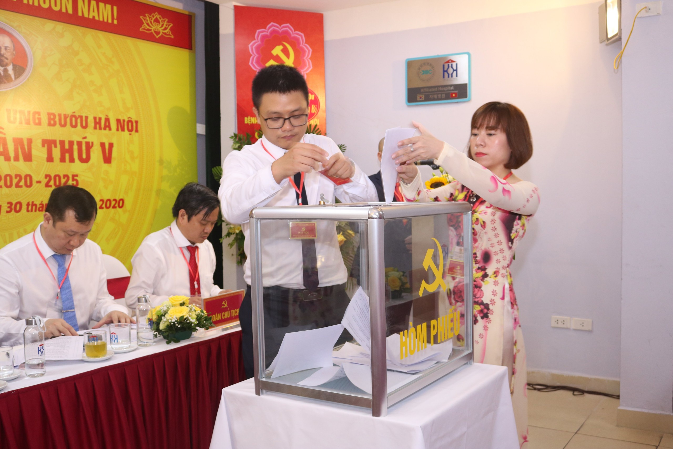 Ảnh: Các đại biểu bỏ phiếu bầu Ban chấp hành Đảng bộ Bệnh viện Ung Bướu Hà Nội nhiệm 2020-2025.
