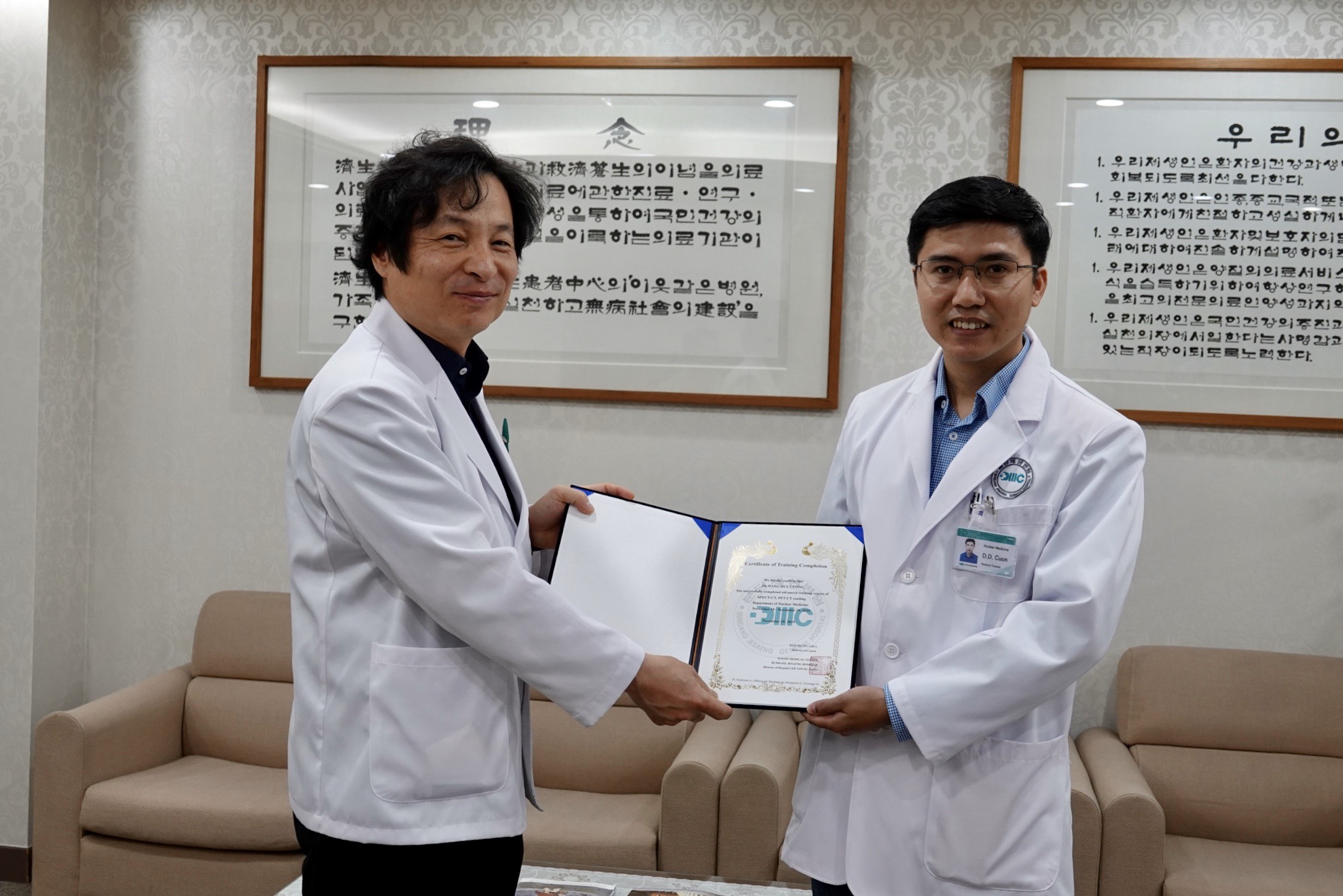 ThS.BS Đặng Duy Cường – Phó trưởng Khoa Y học hạt nhân cũng đã có 2 tuần học hỏi tại Khoa Y học hạt nhân của Bệnh viện Bundang Jesaeng. Bên cạnh các máy móc hiện đại như SPECT, PET/CT, SPECT/CT, tại đây còn có những loại dược chất phóng xạ giúp phục vụ thực hiện được nhiều kỹ thuật chuyên sâu.