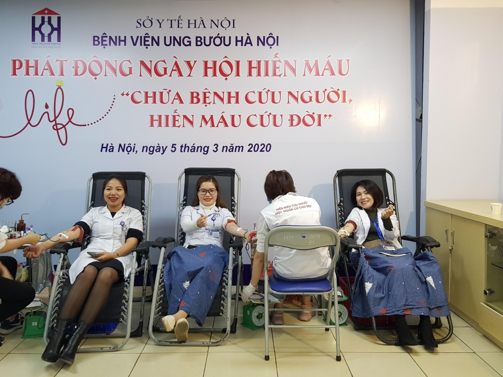 Tham gia hiến máu có lãnh đạo bệnh viện, lãnh đạo các khoa phòng cùng gần 200 cán bộ nhân viên của bệnh viện. Ai nấy đều vui vẻ, phấn khởi khi được thực hiện nghĩa cử cao đẹp - trao đi những giọt máu yêu thương. Hơn ai hết, những người làm trong ngành y tế nói chung và Bệnh viện Ung Bướu Hà Nội nói riêng càng thấu hiểu về những khó khăn của việc thiếu máu trong điều trị.
