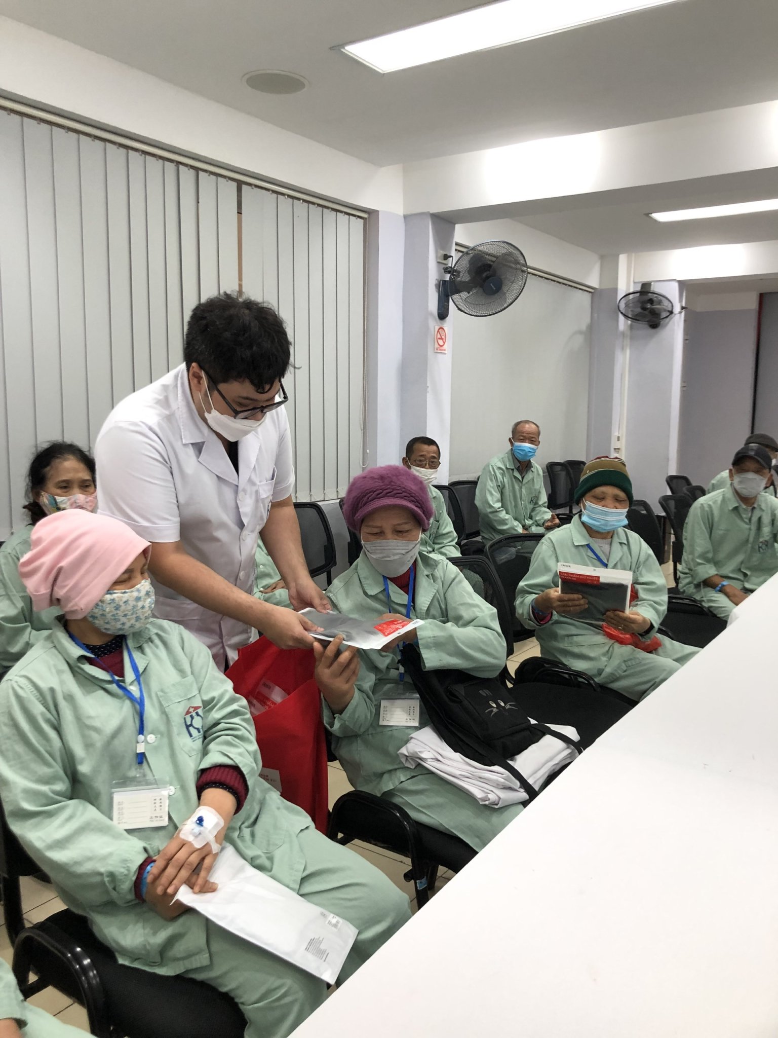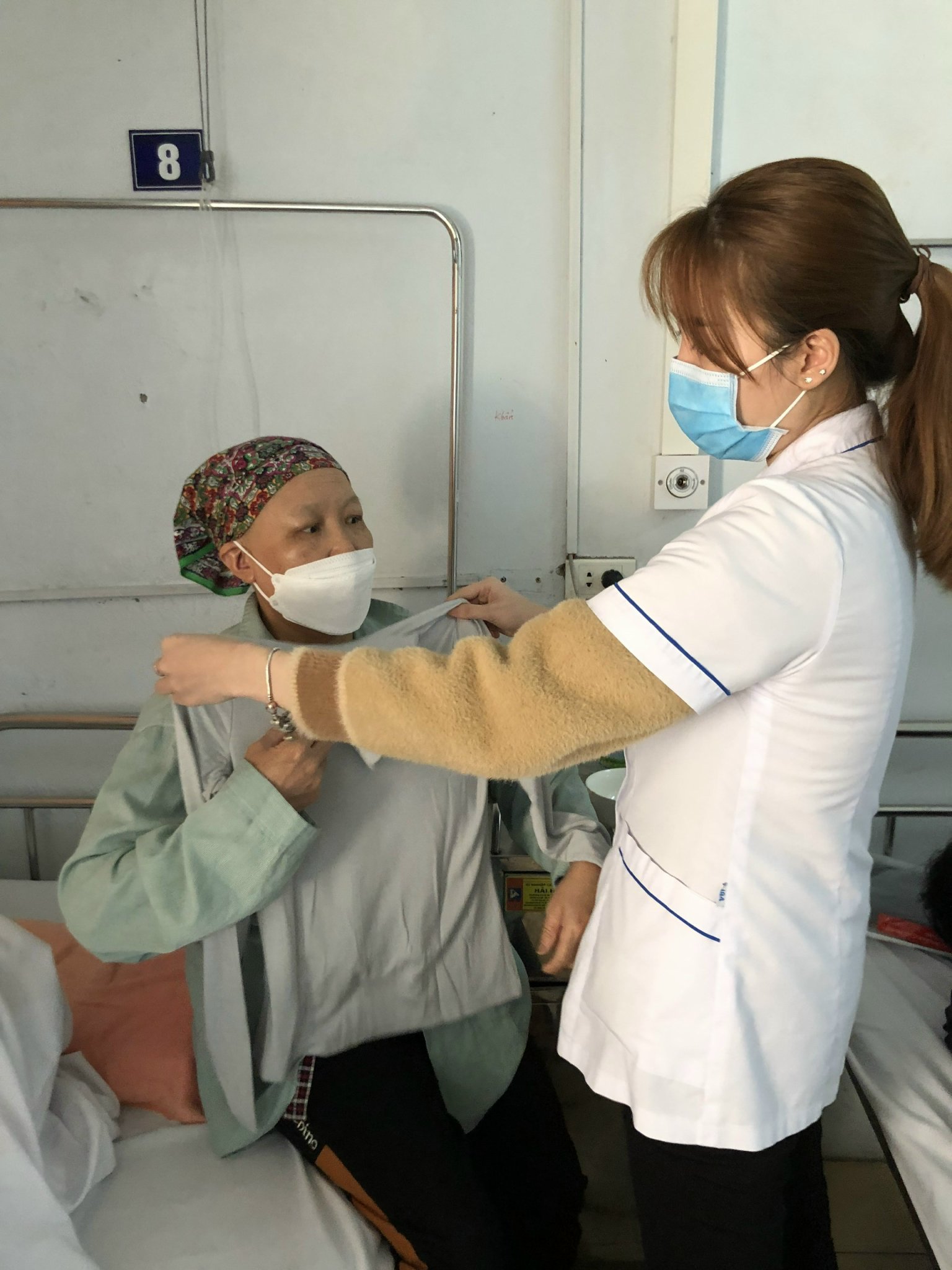 Với mong muốn có thể xua tan cái giá rét ngày đông, mang đến hơi ấm mùa xuân cho người bệnh, ngày 19/01/2022, Phòng Quản lý chất lượng – Công tác xã hội - Bệnh viện Ung Bướu Hà Nội đã thực hiện trao tặng hàng chục áo giữ nhiệt cho bệnh nhân ở các khoa điều trị nội trú có hoàn cảnh khó khăn.