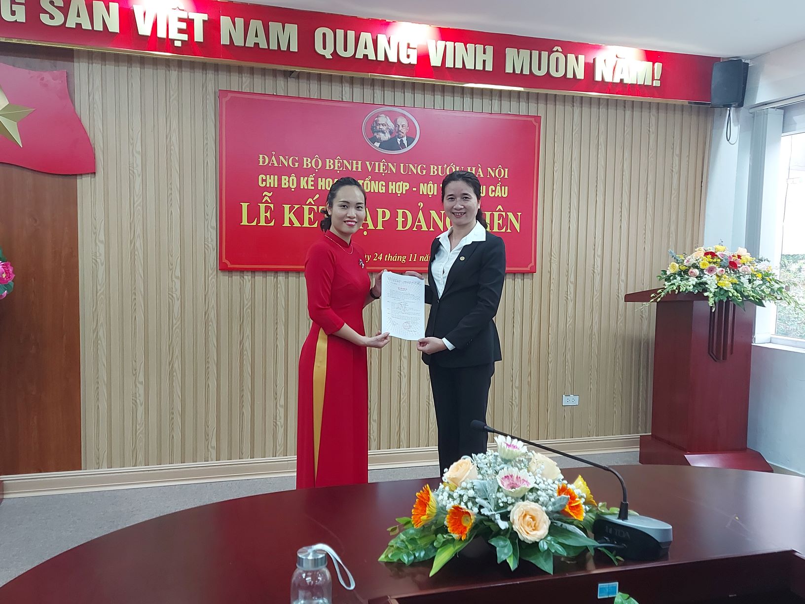 Tại lễ kết nạp, đồng chí Nguyễn Thị Mai Lan – Đảng ủy viên, Bí thư chi bộ đã công bố và trao quyết định của Đảng ủy Bệnh viện về việc kết nạp quần chúng Hoàng Thu Phương vào Đảng Cộng Sản Việt Nam.