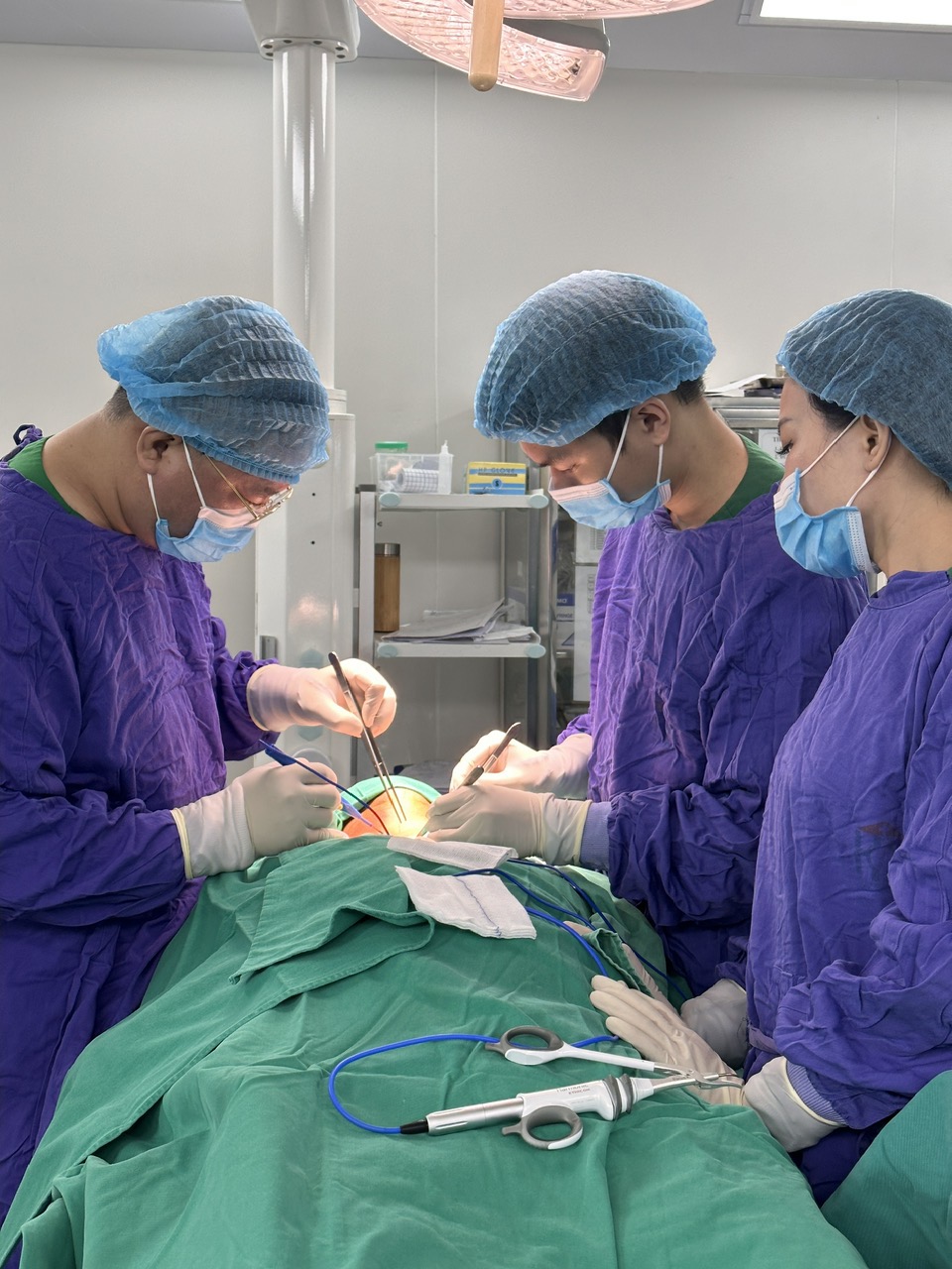 Sau khi hội chẩn, ê-kíp phẫu thuật khoa Ngoại theo yêu cầu đã tiến hành phẫu thuật cắt u cùng toàn bộ thùy trái tuyến giáp. Do khối u chèn ép khí quản nên trước khi đặt ống gây mê. TS. Thắng phải tiến hành hút bớt dịch từ khối u để giảm bớt áp lực, đảm bảo cho đường thở không bị chèn ép. Khối u lâu ngày và kích thước lớn có nhiều mạch tân tạo, kíp phẫu thuật cần khéo léo khống chế cuống mạch để quá trình cắt u không bị chảy máu ồ ạt. Sau ca mổ, bệnh nhân hồi phục tốt, không phải truyền máu, không còn tình trạng khó thở, nuốt vướng.