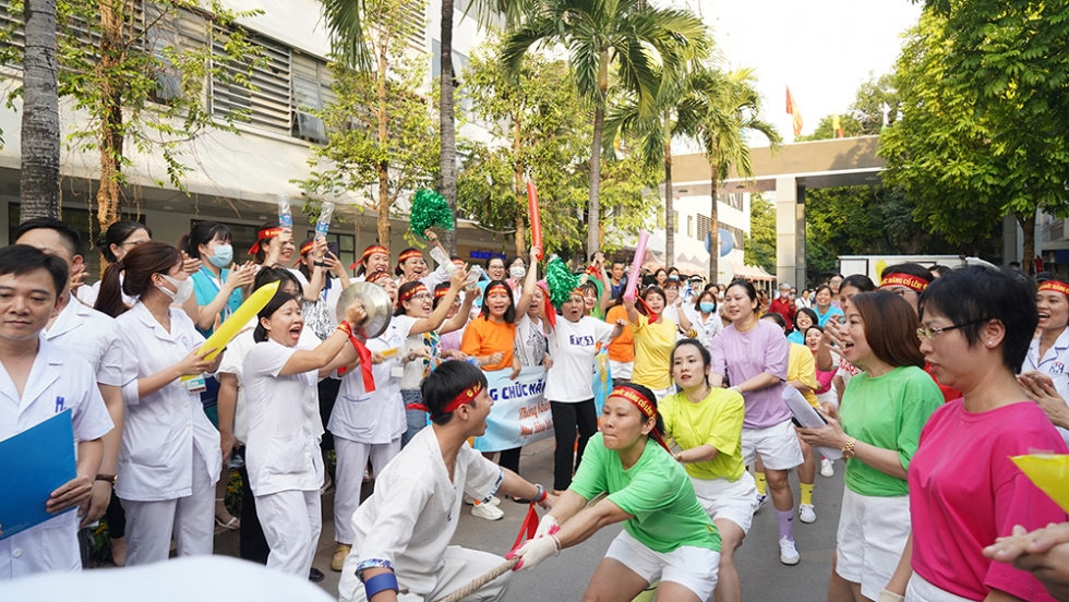 Chương trình hội thao với giải bóng đá dành cho nam và kéo co dành cho nữ đã diễn ra vô cùng sôi động, thể hiện tinh thần đoàn kết của cán bộ nhân viên các khoa phòng trong bệnh viện. Sau 3 trận đấu vòng tròn giữa 3 đội, chức vô địch bóng đá nam đã thuộc về đội Ung Bướu 3 (Chẩn đoán hình ảnh).