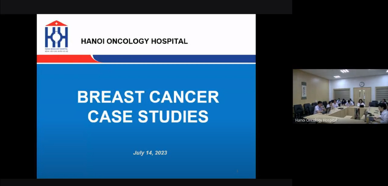 Chương trình thảo luận trực tuyến các ca lâm sàng ung thư vú sẽ được bệnh viện Ung Bướu Hà Nội tổ chức hàng quý, với khách mời là các chuyên gia ung thư vú Quốc tế. Hình thức trao đổi chuyên môn này đã mở ra những hướng tiếp cận mới, những triển vọng hợp tác đầy tiềm năng nhằm nâng cao năng lực chẩn đoán và điều trị của bệnh viện đối với căn bệnh có tỷ lệ mắc cao này.