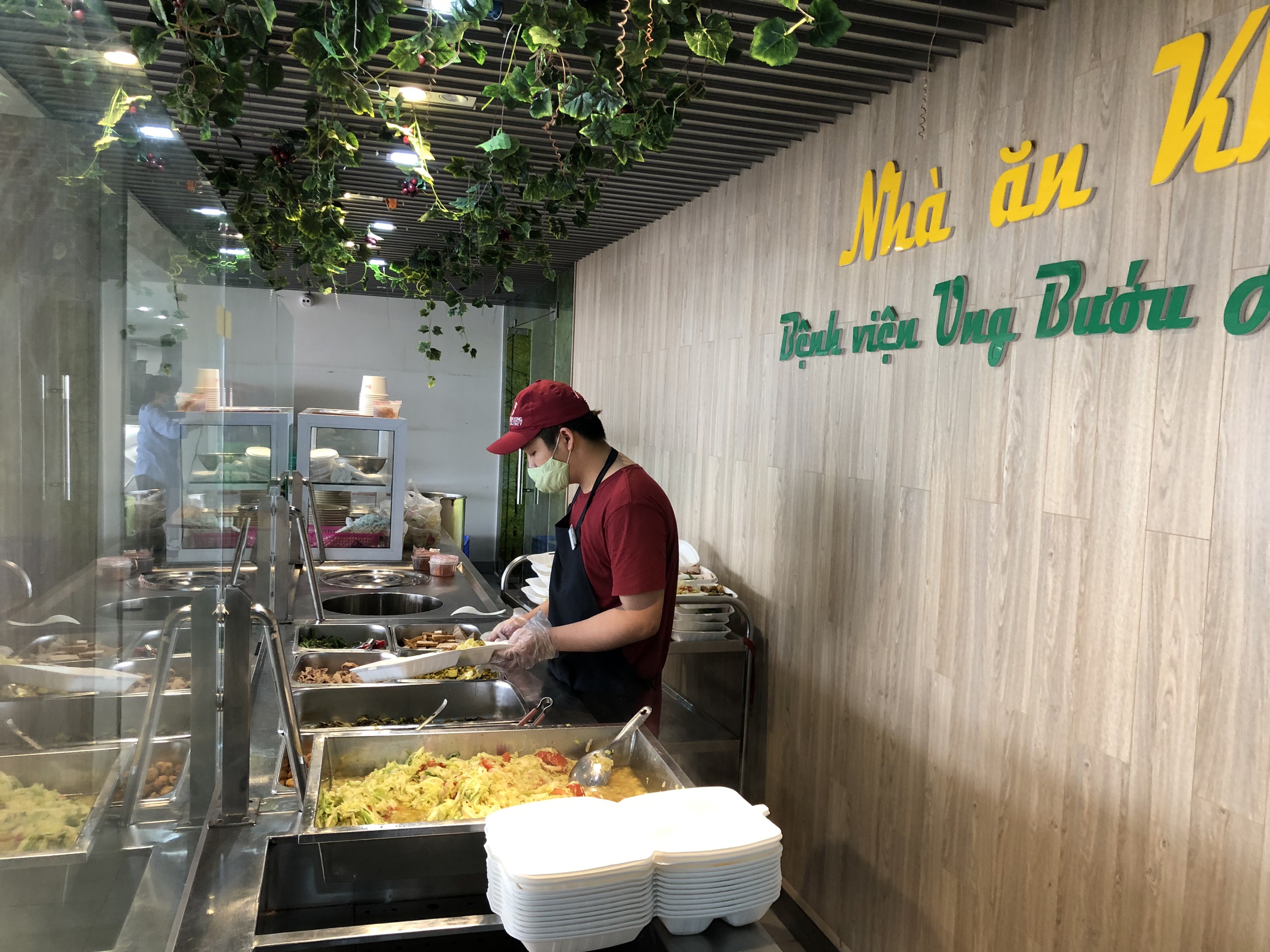 Để hạn chế sự di chuyển của người bệnh tới nhiều khu vực khác nhau trong Bệnh viện, bệnh nhân và người nhà được phục vụ suất ăn tại từng giường bệnh.