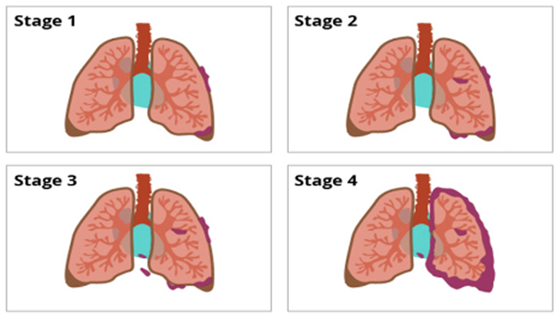 Khoảng 85% các trường hợp ung thư phổi là ung thư phổi không tế bào nhỏ (NSCLC), trong đó có đến một nửa là tiến triển tại chỗ, tại vùng ở thời điểm chẩn đoán.Theo bảng phân loại TNM tái bản lần thứ 8 do Hội Nghiên cứu Ung thư Phổi Thế giới (The International Association for the Study of Lung Cancer - IASLC), ung thư phổi không tế bào nhỏ được chia làm 4 giai đoạn đựa vào u nguyên phát (T-Tumor), hạch vùng (N-Node) và di căn xa (M-Metastasis). Trong đó giai đoạn I, II là giai đoạn khu trú tại chỗ, giai đoạn III là giai giai đoạn tiến triển tại chỗ - tại vùng, giai đoạn IV là di căn