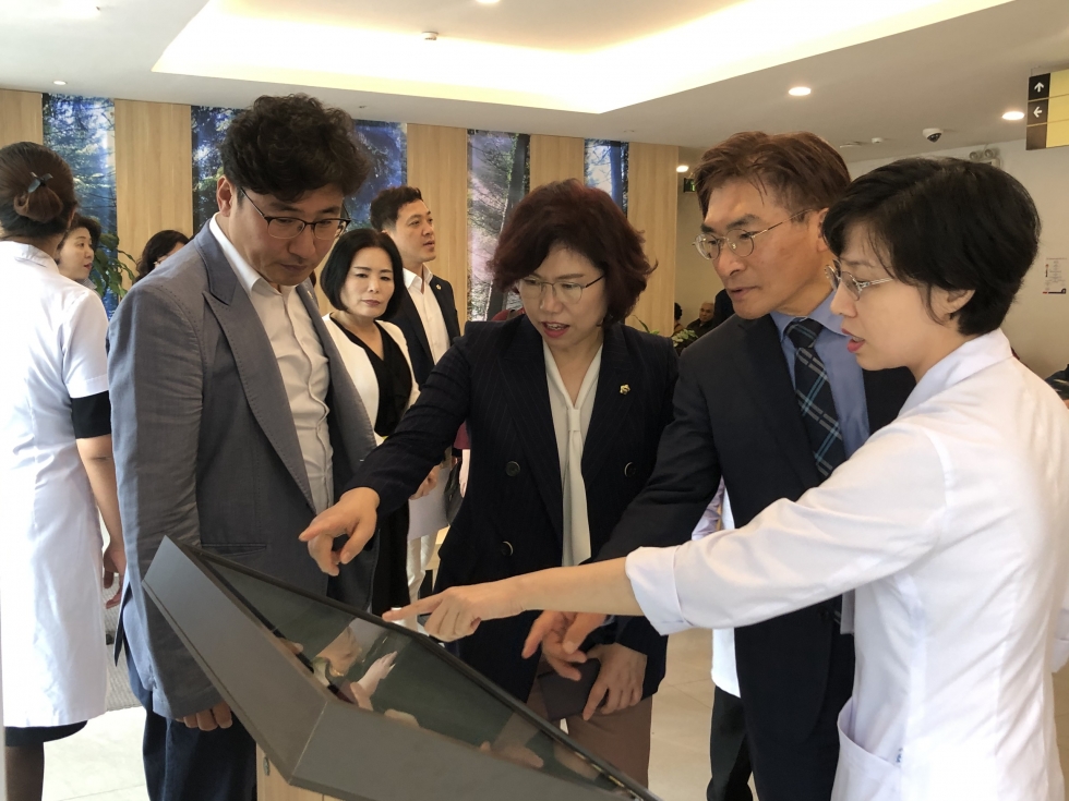 Sau buổi làm việc, Đoàn lãnh đạo chính quyền tỉnh Gyeonggi đã đi tham quan các khoa điều trị của Bệnh viện Ung Bướu Hà Nội.