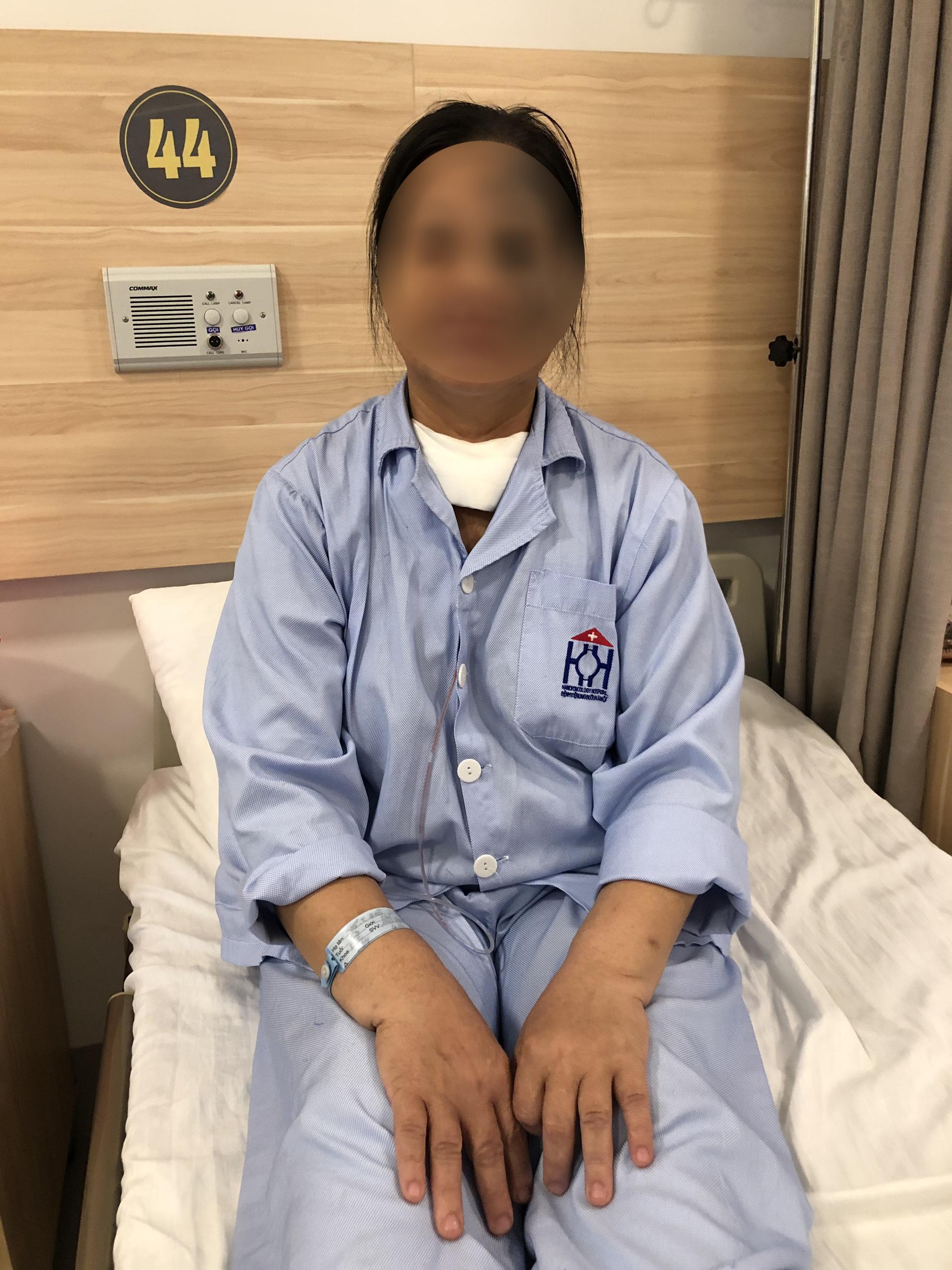 Bệnh nhân Nguyễn Thị Đ., 53 tuổi, trú tại Đồng Lạc – Tiên Dược – Sóc Sơn – Hà Nội phát hiện có u ở cổ cách đây 4 năm. Chị không đến cơ sở y tế để khám và điều trị mà tự đắp thuốc nam song không hiệu quả, khối u ngày một phát triển khiến cổ bị phình to ra 2 bên. Thời gian gần đây, chị Đ. thấy tức ngực nên mới đi bệnh viện kiểm tra.