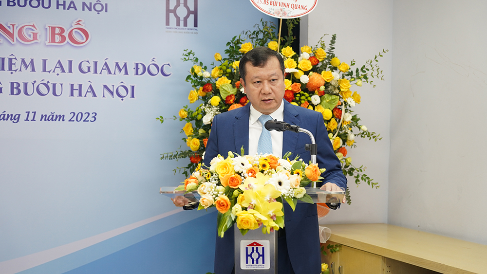 Tại Lễ công bố, đồng chí Nguyễn Đình Hưng, Phó Giám đốc Sở Y tế Hà Nội đã trao quyết định số 5091/QĐ-SYT ngày 06/11/2023 của Giám đốc Sở Y tế Hà Nội về việc bổ nhiệm lại Giám đốc Bệnh viện Ung Bướu Hà Nội cho TS.BS. Bùi Vinh Quang. Thời hạn giữ chức vụ 05 năm kể từ ngày Quyết định có hiệu lực.