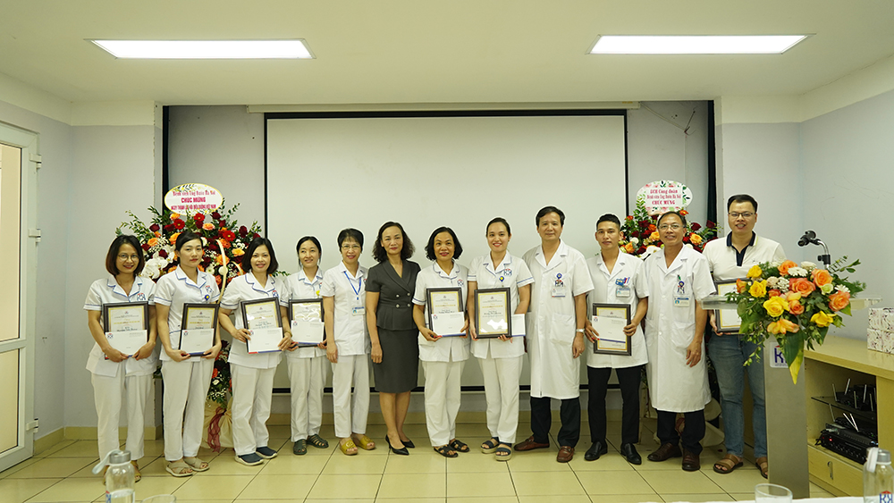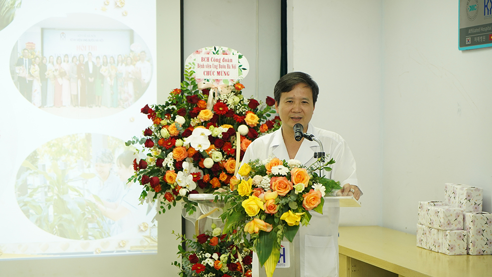 Phát biểu tại buổi lễ, BS.CKII. Lê Văn Thành – Phó Giám đốc Bệnh viện Ung Bướu Hà Nội ghi nhận và đánh giá cao những đóng góp tích cực của đội ngũ điều dưỡng với sự phát triển chung của bệnh viện. Từ con số 25 điều dưỡng trong ngày đầu thành lập, đến nay sau hơn 20 năm hình thành và phát triển, đội ngũ điều dưỡng bệnh viện Ung Bướu Hà Nội đã tăng lên hơn 300 Điều dưỡng và Kỹ thuật y. Bên cạnh đó, chất lượng chuyên môn của các điều dưỡng cũng ngày càng tiến bộ, nhiều nghiên cứu khoa học, sáng kiến kinh nghiệm của Điều dưỡng được đánh giá cao, các hoạt động học tập trong và ngoài nước luôn được đẩy mạnh. Cũng trong buổi lễ, ThS. Nguyễn Thị Thanh Phương, Chi hội trưởng Chi hội Điều dưỡng Bệnh viện Ung Bướu Hà Nội đã trao giấy khen tôn vinh 8 điều dưỡng/kỹ thuật viên có thành tích nổi bật trong công tác điều dưỡng tại bệnh viện.