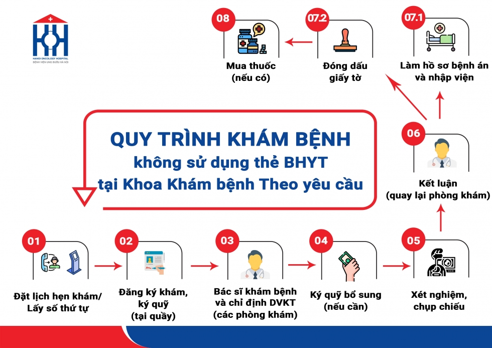 Quy trình khám bệnh không sử dụng thẻ BHYT tại Khoa Khám Bệnh Theo Yêu Cầu