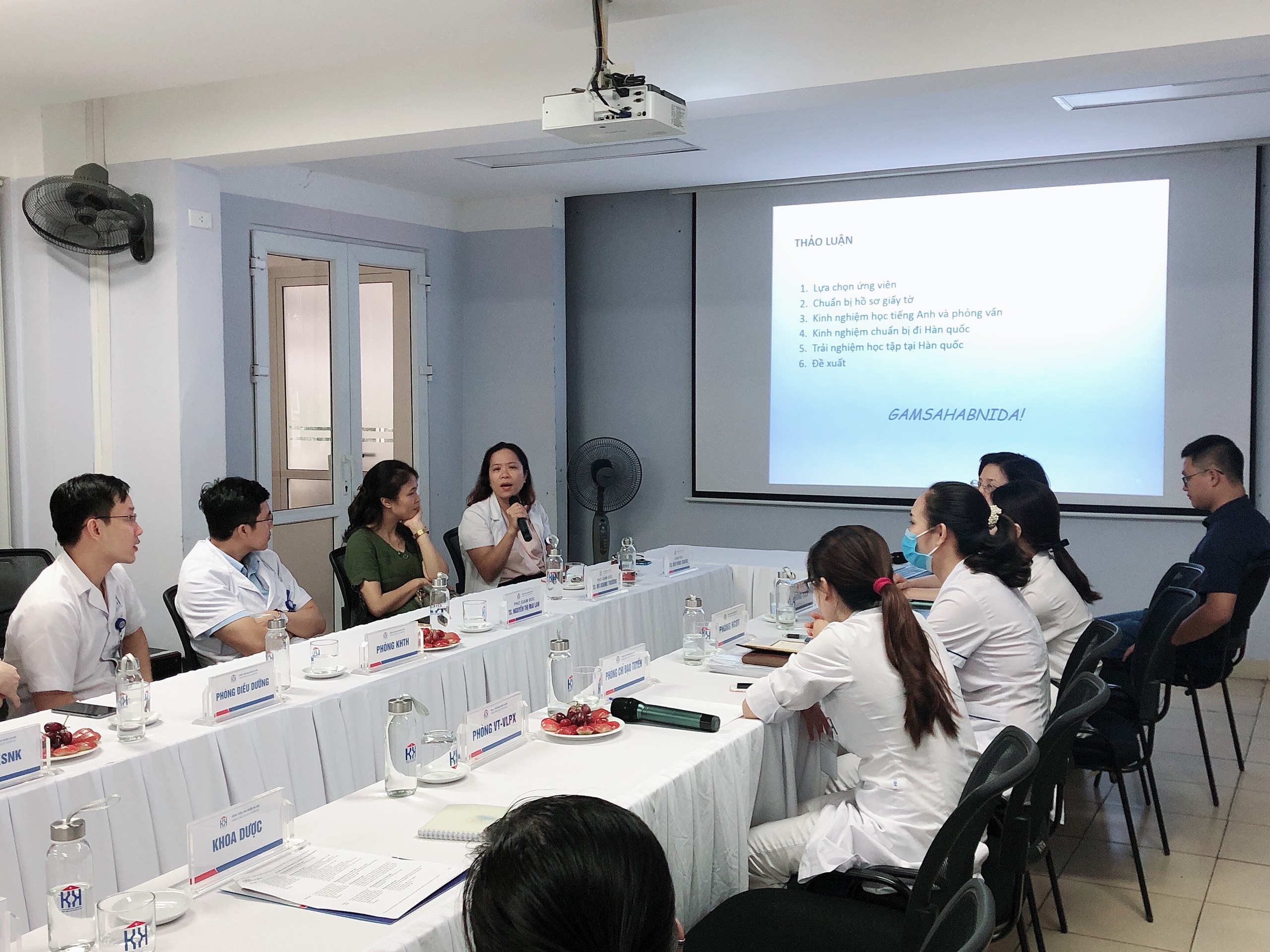 Tại buổi ra mắt Câu lạc bộ Ngoại ngữ HOH-IC, ThS. Nguyễn Thanh Hằng, Đơn vị Hợp tác Quốc tế - Nghiên cứu khoa học - Bệnh viện Ung Bướu Hà Nội đã giới thiệu một số chương trình học tập tại Hàn Quốc nhằm mục tiêu nâng cao năng lực chuyên môn, tạo cơ hội trải nghiệm môi trường làm việc quốc tế cho các bác sỹ và điều dưỡng. Thành viên CLB còn được lắng nghe những chia sẻ từ một số bác sĩ đã có cơ hội học tập ở nước ngoài về các trải nghiệm trong quá trình học tập, thực tập tại các bệnh viện quốc tế.