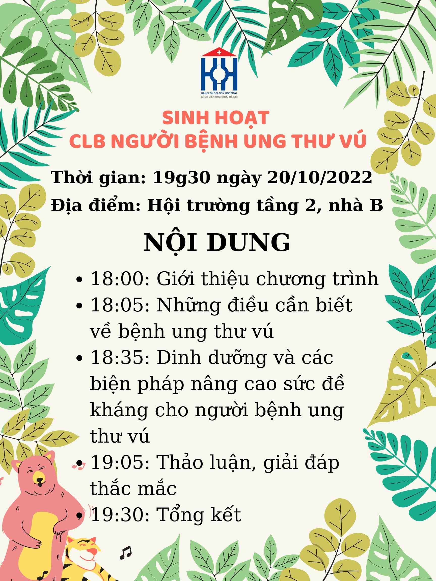 THÔNG BÁO SINH HOẠT CLB NGƯỜI BỆNH UNG THƯ VÚ