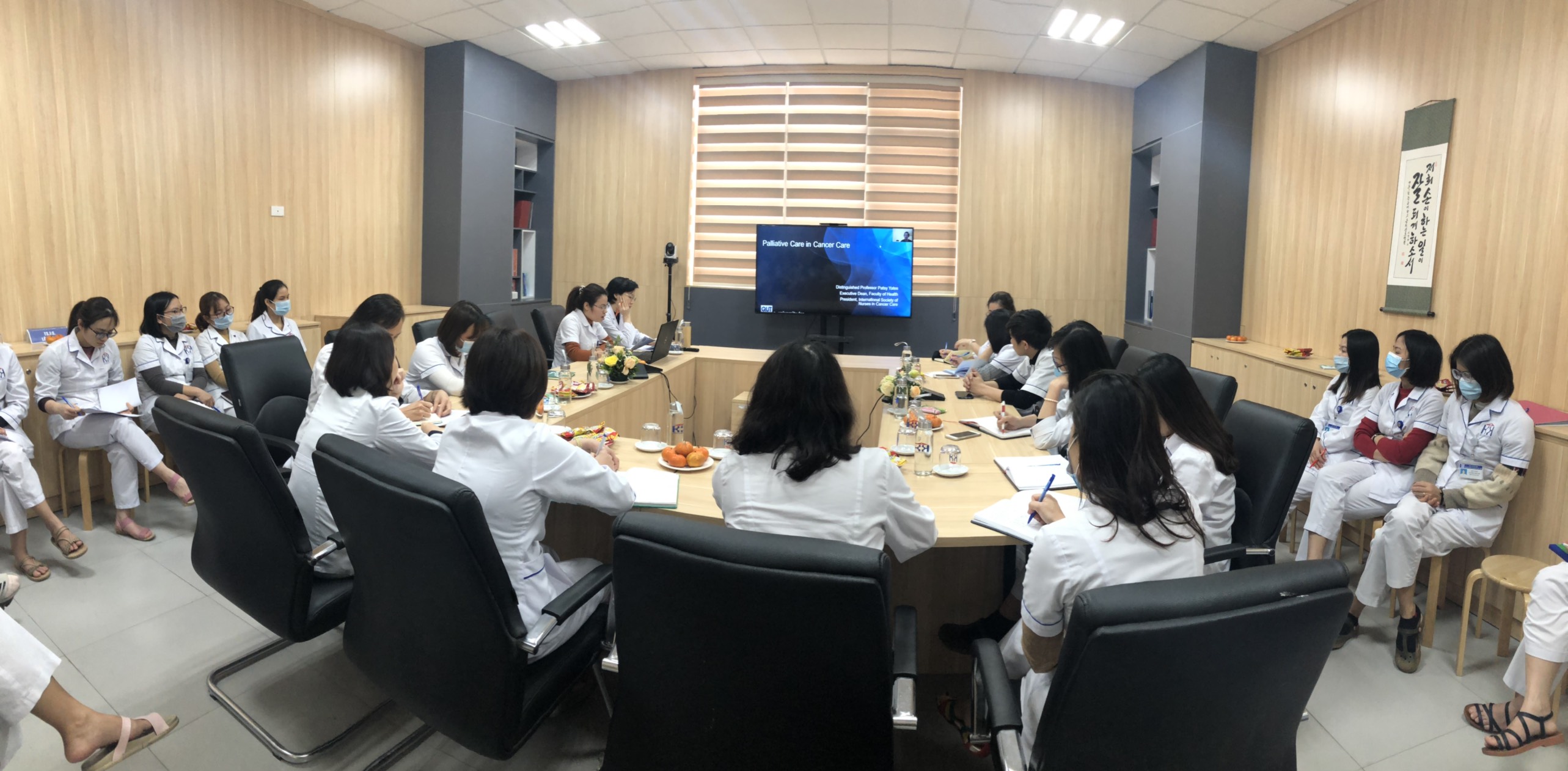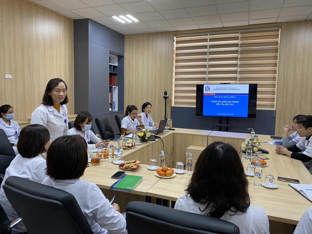 Sau bài trình bày, Ths. Nguyễn Thị Thanh Phương – Điều dưỡng trưởng Bệnh viện đã cùng các thành viên thảo luận về nguyên tắc và chiến lược chính để cung cấp dịch vụ chăm sóc giảm nhẹ có chất lượng, qua đó xác định được vai trò thiết yếu của chăm sóc giảm nhẹ trong việc chăm sóc người bệnh ung thư.