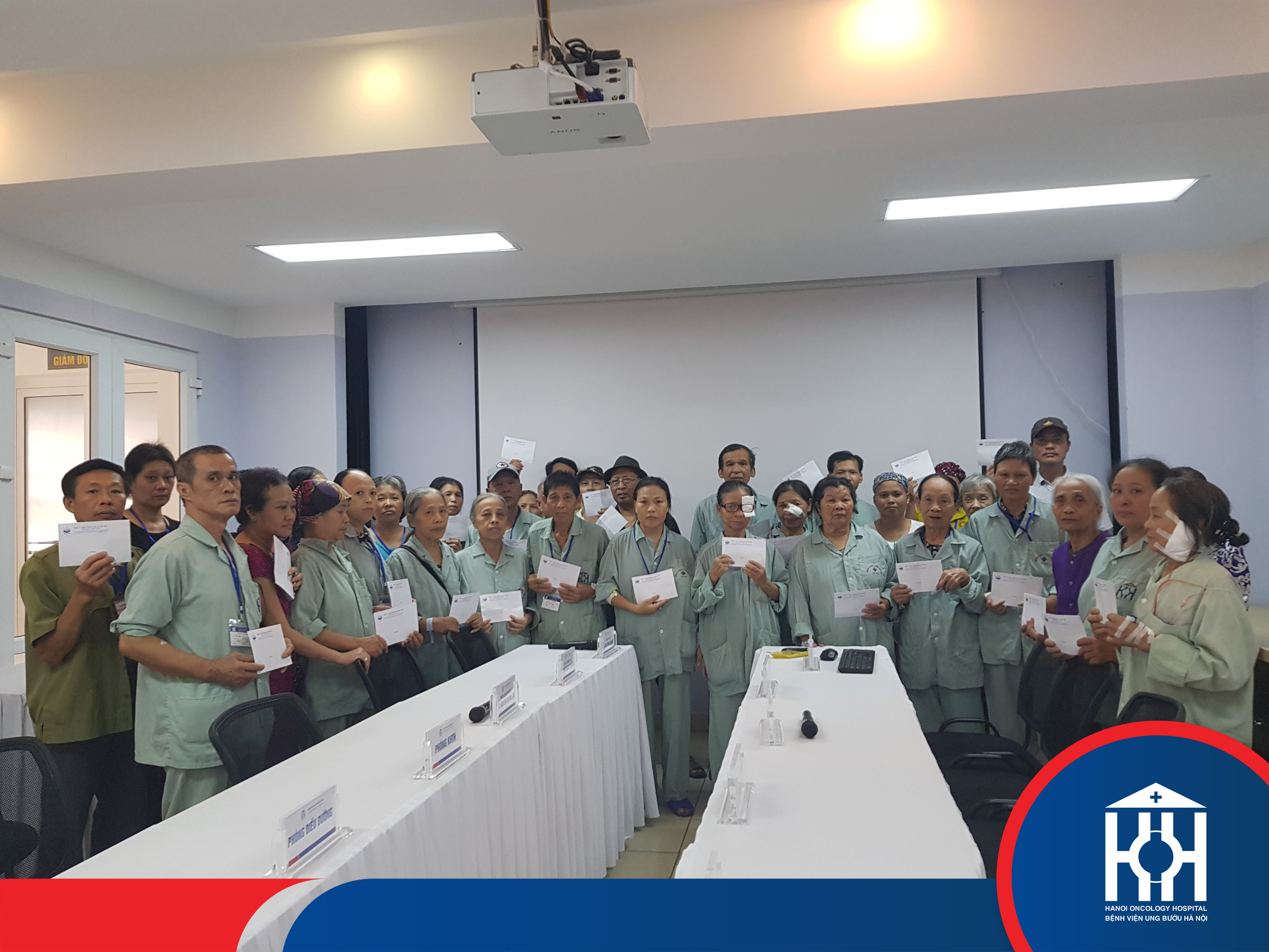 50 bệnh nhân ung thư có hoàn cảnh đặc biệt khó khăn đang nằm điều trị tại các khoa: Nội I, Nội II, Chăm sóc giảm nhẹ, Ngoại Vú – Phụ khoa, Ngoại Tổng hợp, Ngoại Đầu cổ đã được nhận mỗi người 1 phần quà là 1.000.000 đồng tiền mặt từ nhà tài trợ.