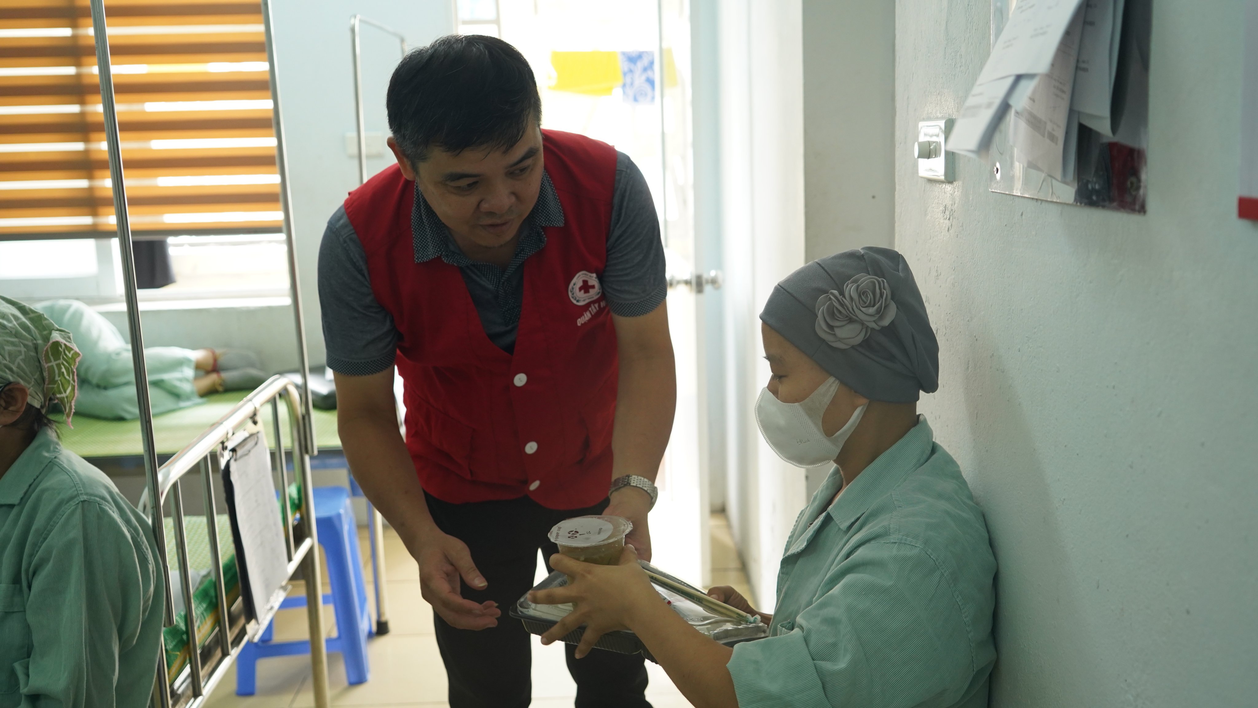 Những phần cơm canh còn nóng hổi, đầy đủ dinh dưỡng và đảm bảo an toàn vệ sinh thực phẩm được các nhà hảo tâm mang đến tận giường bệnh, kèm theo những lời động viên thân tình thật sự là món quà vô cùng ý nghĩa, giúp xoa dịu nỗi đau của những người không may mắc phải căn bệnh hiểm nghèo, tiếp thêm động lực để họ vững niềm tin chiến đấu và vượt qua bệnh tật.