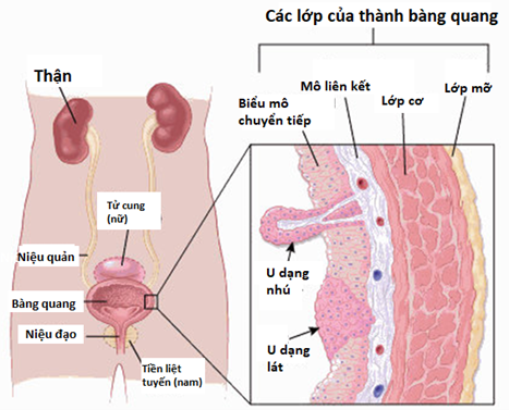 Ung thư bàng quang thường xuất phát từ lớp bề mặt hay lớp trong cùng của thành bàng quang. Khi ung thư phát triển qua các lớp phía ngoài của thành bàng quang, việc điều trị sẽ trở nên khó khăn hơn.